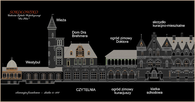 Wysokość hełmów lepiej widoczna jest na rysunku poniżej. Po cichu przyznam się, że projekt tej elewacji zajął mi mnóstwo czasu, ślęczałam nad nim całe tygodnie, jak ta pracowita mrówa. A elewacje są cztery. Po wydrukowaniu rysunek miał wielkość stołu. Kolory oczywiście barokowe, mocne i pełne ugry (nazywane przeze mnie jajecznicą) obok stonowane, wapienne biele, pięknie harmonizujące z odcieniem żółtego piaskowca, którego na tej elewacji jest bardzo dużo. Teraz jak patrzę na odnowioną elewację to się uśmiecham - cud jajecznica, całkiem jak na moim rysunku.